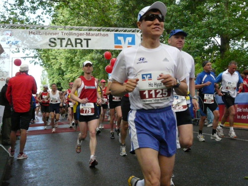Die Sonne kam pünktlich zum Marathon-Start, die Stadtbahn aus Karlsruhe hatte wegen eines technischen Defektes Verspätung. Deshalb mussten einige gemeldete Halbmarathon-Läufer auf den Start verzichten. Heilbronns Oberbürgermeister Helmut Himmelsbach war dennoch begeistert: „Das ist ein phantastisches Bild. Der Trollinger-Marathon setzt als Gemeinschaftsaktion der Kommunen an der Strecke auch Zeichen für das Leistungspotenzial unserer Region. Und alle, die den Heilbronner Erlebnis-Marathon auf sich nehmen, werden von einer tollen Stimmung buchstäblich ins Ziel getragen.“
