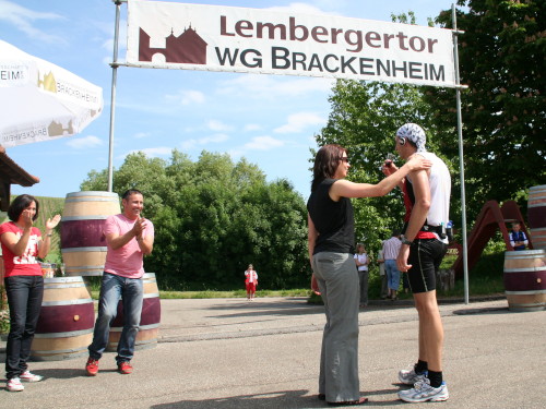 Intersportgeschäftsführer Klaus Jost (er lief dort 4:10) und Revisa-Geschäftsführer Bernd Bührer (Halbmarathon 2:00). Auch Miriam Heckel, die Württemberger Weinkönigin des Vorjahres, war von ihrem Lauf-Erlebnis durch die Weinberge so begeistert, dass sie wieder startet. Originelle Kostüme waren in diesem Jahr wieder der Heuchelbergturm, eine Weintraube und zwei „Kräuterfläschchen“. Auch Hula-Mädchen gingen auf die Strecke.