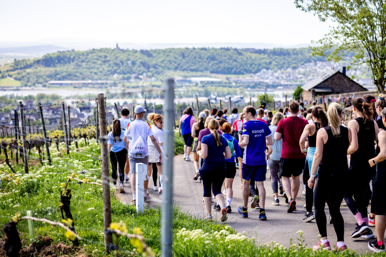 8-Kilometer wieder mit Shuttle-Bussen zum Schloss Henkell gebracht, erhielten Finisher-Shirts, Medaillen, Pasta und erfreuten sich an weiteren Köstlichkeiten. Nach der offiziellen Siegerehrung vor der Bühne wurde bei Musik von DJ Rauschhofer bis in den Abend ein besonderer Tag gefeiert.