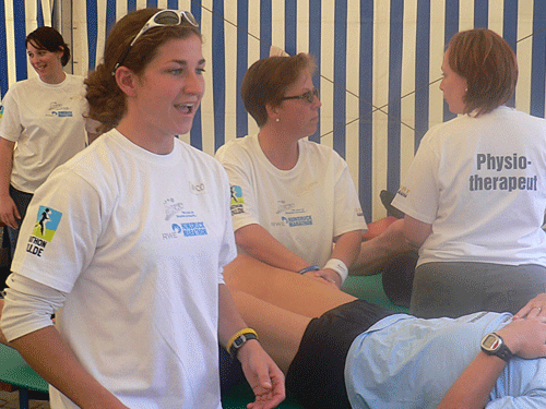Mit den reichlich vorhandenen Spezialgetränken konnten die Aktiven ihren Mineralhaushalt wieder ausgleichen und geübte Physiotherapeuten massierten die Krämpfe und Schmerzen aus ihren geplagten Gliedern.