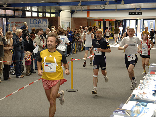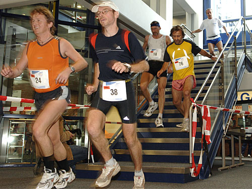Nur zwei Wochen nach seinem Coup beim Halbmarathon auf Mallorca (marathon4you.de berichtete) sicherte sich der Nürnberger Hannes Schmidt in 2:56:21 Stunden die Siegprämie beim 1. Marathons in einem Bürogebäude, bei dem es 54 mal im Kreis und 594 Stufen rauf und runter über zwei Stockwerke ging.