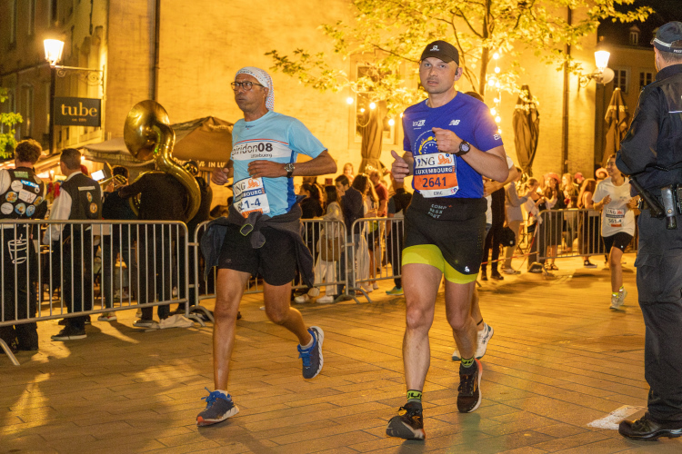 Über 13.000 Athletinnen und Athleten aus 120 Nationen starteten am Samstagabend in das nächtliche Laufevent, das dieses Jahr erneut ganz Luxemburg Stadt zu einem internationalen Fest des Sports machte. Von wenigen Kilometern für die kleinsten Füße über ein Rennen auf Rollen bis zur vollen Marathonstrecke für ehrgeizige Sportbegeisterte – jeder konnte Teil des Großereignisses werden. Auf der Strecke sorgten an 56 Punkten DJs und Sambagruppen, aber auch Chöre, Blasmusik und portugiesische Folkloregruppen für musikalische Vielfalt und Partystimmung.