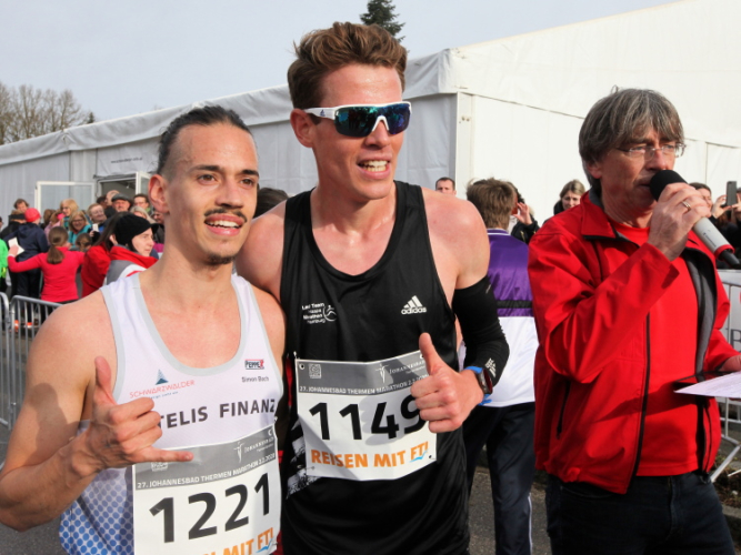 Bei den Frauen belegten gleich drei Regensburger Läuferinnen die ersten drei Plätze: Mit 32:49.87 war Miriam Dattke die Schnellste vor Domenika Mayer (33:49.95) und Corinna Harrer(36:23.79). Maria Kerres, Siegerin im Halbmarathon in 1:16:26.48, hob den hohen Stellenwert des Johannesbad Thermen-Marathons im Laufkalender hervor. Sie verwies Tina Fischl (WSV Otterskirchen, 1:19:41.19) und Karina Maier, (TSV Detag Wernberg, 1:22:55.69) auf die Plätze. Thorben Dietz (LG Filstal) erreichte in 1:06:50.16 als erster Halbmarathoni das Ziel vor Lokalmatador Tobias Schreindl (LG Passau, 1:07:38.43) und Michele Rossi (Atletica Castello, 1:12:36.19).