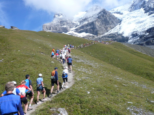 Der höchste Punkt wird bei 2205 m erreicht (km 40,5 - Eigergletscher), dann hat die Qual ein Ende. Fast bequem geht es weiter und schließlich abwärts ins Ziel Kleine Scheidegg (2061 m).