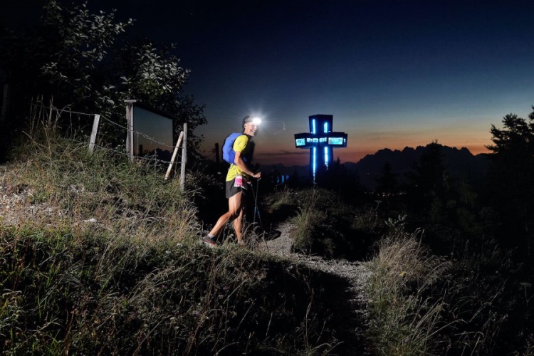 Beim Endurance Trail führt die 92 km Strecke von Fieberbrunn nach Kitzbühel (840 km und 4.600 Hm) – Sonnenuntergang am Wildseeloder, das toll beleuchtete Jakobskreuz auf der Buchensteinwand und den Sonnenaufgang am Kitzbüheler Horn inklusive!