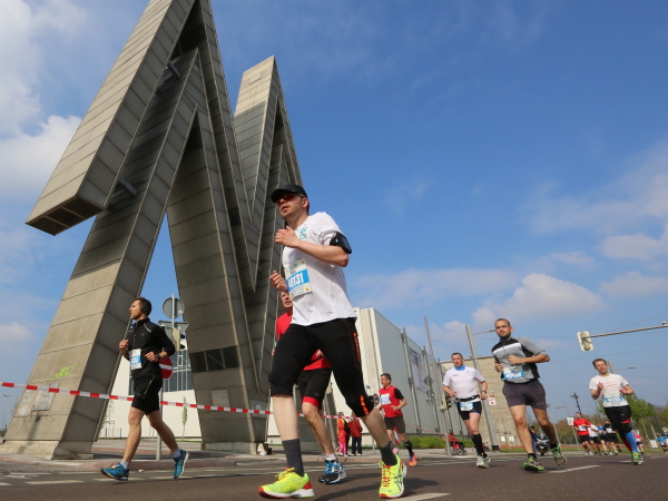 Die 21 km lange Strecke, die von den Marathonläufern daher zwei Mal absolviert wird, verläuft zunächst über die Marschnerstraße, Käthe-Kollwitz-Straße und Friedrich-Ebert-Straße, um dann in Höhe des Neuen Rathauses auf den Innenstadtring zu treffen. Dieser wird in Höhe des Augustusplatzes in Richtung Prager Straße wieder verlassen. Nachdem im weiteren Verlauf unter anderem das Völkerschlachtdenkmal passiert wird, geht es über die Connewitzer Straße und Zwickauer Straße wieder stadteinwärts. Nahe der Deutschen Bücherei biegen die Aktiven in die Semmelweißstraße ein, um dann auf der Kurt-Eisner-Straße die Südvorstadt zu durchqueren. Auf dem Schleußiger Weg und der Erich-Zeigner-Allee werden die Stadtteile Schleußig und Plagwitz durchlaufen, bis es über die Jahnallee wieder in Richtung des Start-Ziel-Bereichs geht.