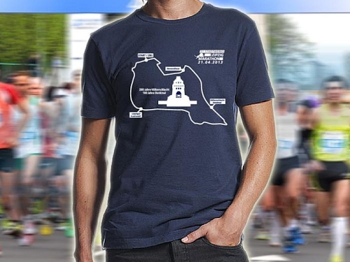 Bei der Anmeldung kann man das offizielle Veranstaltungs-Shirt gleich mitbestellen. Es nimmt Bezug auf das große Jubiläum, das die Stadt Leipzig im kommenden Jahr feiert: 200 Jahre Völkerschlacht und 100 Jahre Völkerschlachtdenkmal werden auf dem Funktions-Shirt, das für 15,- Euro zu haben ist, gewürdigt.
