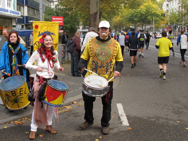 Bühnen, Videoleinwände, insgesamt zwölf Moderatoren und zahlreiche Musikgruppen von der hundertköpfigen Sambagruppe bis zum Alleinunterhalter: Besonders auf den rennentscheidenden letzten 15 Kilometern werden die Läufer von einer dichten Abfolge von Streckenfesten quasi ins Ziel in der Festhalle getragen. Längst Kultcharakter bei den 20.000 Läufern haben zum Beispiel die Sambagruppe Bloco X (Goetheplatz) und die Jungs vom Musikhaus Taunus, die an der Schwanheimer Brücke in Dauerschleife ihr Medley „Über sieben Brücken musst Du gehn, 700 Meter überstehn" spielen.