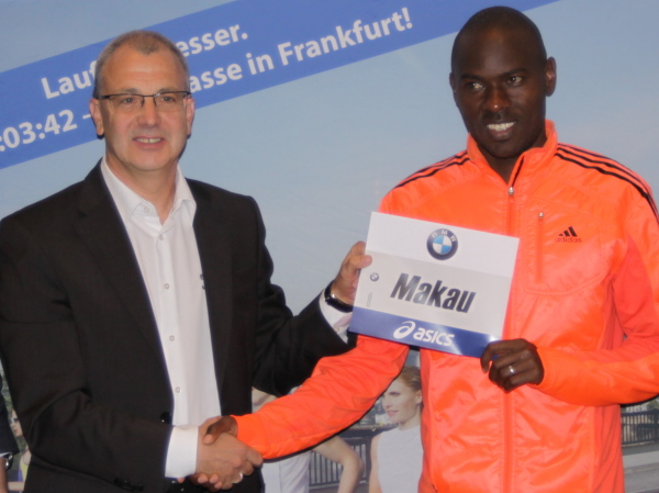 „Wir haben eine exquisite Fünfergruppe mit Topstars verpflichtet und eine weitere Qualitätssteigerung für die Veranstaltung erreicht“, sagt Schindler. Wenn wir von den Olympiastartern Wilson Kipsang und Ayele Abshero absehen, dann ist mit Tsegay der schnellste Marathonläufer des Jahres 2012 und mit Makau der schnellste Marathonläufer aller Zeiten am Start. „Ich habe es bis vor wenigen Wochen nicht für möglich gehalten, dass wir zwei solche Hochkaräter in Frankfurt an die Startlinie bringen können. Das bedeutet aber auch, dass wir im Gegensatz zu den vergangenen Jahren ein Rennen unter anderen Vorzeichen bekommen werden“, so der Renndirektor. Durch die Konzentration auf fünf Topstars dürfte ein Überraschungssieg so gut wie ausgeschlossen sein.
