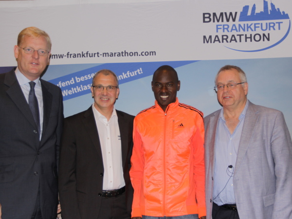 Die Herausforderer für Weltrekordhalter Patrick Makau beim BMW Frankfurt Marathon am 28. Oktober stehen fest. Wie Renndirektor Jo Schindler und der Sportliche Leiter Christoph Kopp am Dienstag mitteilten, wird ein Quartett versuchen, den weltweit schnellsten Marathonläufer (2:03:38 Stunden) zu bezwingen. Als da wären: der Äthiopier Yemane Tsegay (Bestzeit 2:04:48), Albert Matebor aus Kenia (2:05:25), Bazu Worku (Äthiopien/2:05:25) sowie der Kenianer Gilbert Kirwa (2:06:14). Der BMW Frankfurt Marathon hat somit das bislang schnellste Elitefeld in seiner 31-jährigen Geschichte. Die persönlichen Rekorde der erwähnten Weltklasseläufer gemittelt, ergibt eine im Vergleich zum Vorjahr um exakt 70 Sekunden bessere Zeit.