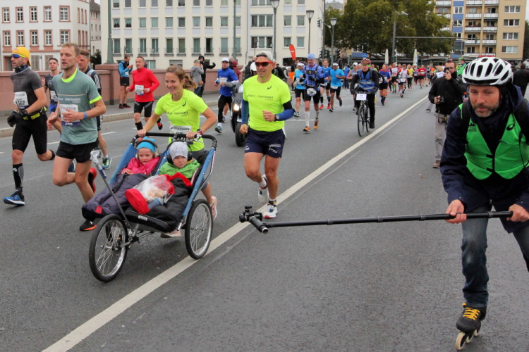 Die Freude und der Jubel im Ziel in der Frankfurter Festhalle waren riesig, als die Drei Wind und Kälte erfolgreich getrotzt hatten. Das könnte 2019 wiederholt werden. Denn Kerstin Bertsch hat ja drei Kinder und war im Training meist mit dem Dreisitzer-Kinderwagen unterwegs. Der Weltrekord für den Marathon mit drei Kindern liegt bei über vier Stunden. „Das“, sagte die wohl schnellste Kinderwagenschieberin der Welt, „ist machbar für uns.“