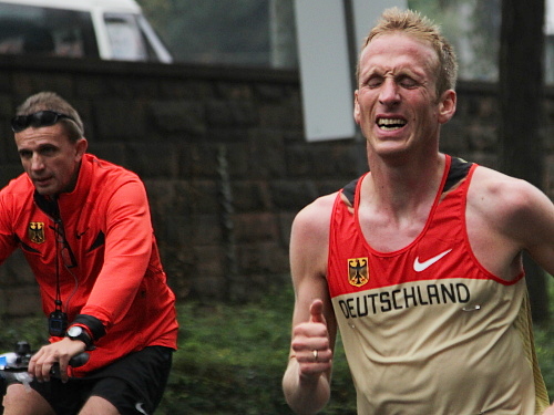 „Ich habe alles probiert. Bis Kilometer 34 war ich auf Kurs Bestzeit, wir sind sogar 22 Sekunden schneller angelaufen als geplant. Am Ende war ich völlig platt, weiß aber nicht, woran es gelegen hat. Der Mann mit dem Hammer kam so extrem. Vielleicht habe ich mir doch zu viel Druck gemacht, ich hoffe ich bekomme die Lockerheit zurück. Nach den Deutschen Meisterschaften in Kassel hatte ich gedacht, ich bin auf dem richtigen Weg. Hatte viel Zeit für die Vorbereitung, mehr als ich je hatte, und hatte tolle Werte.“