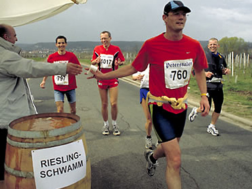 In Dackenheim, kleinster Ort des Landkreises Bad Dürkheim und an der Rennstrecke, kommen auch die Läuferinnen und Läufer zu einer speziellen Erfrischung: Seit Beginn der Marathonveranstaltung ist der "Rieslingschwamm“ nicht mehr wegzudenken. Der Golfclub Deutsche Weinstraße lädt zum Probespielen ein, Käse und Wein sollen fit machen.
