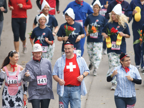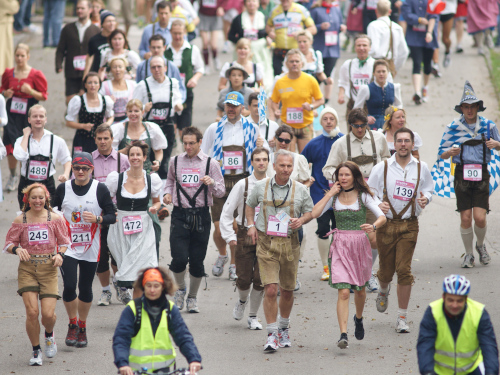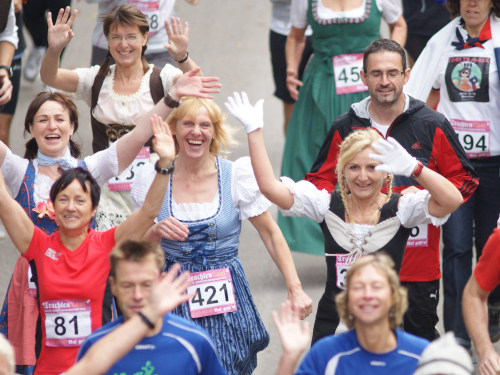 Doch nicht nur Läuferinnen und Läufer in Lederhos’n und Dirndl waren heute in großer Zahl vertreten – auch Teilnehmer im Hamburger Fischerhemd, Kölner Funkenmariechen-Kostüm oder sogar eine komplette Trachtenkapelle aus dem Odenwald nutzten die Gelegenheit, um die typische Atmosphäre der bayerischen Landeshauptstadt auf eine neue Art zu genießen. Hinzu kamen Läuferinnen und Läufer verschiedenster Nationen wie Holland, Polen, Brasilien oder Burkina Faso, die die 4,5 Kilometer lange Strecke in ihrer Landestracht laufen wollten.