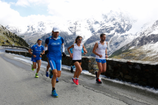 Die italienische Nationalmannschaft Ultramarathon als Testläufer und Promotoren des 1. Stelviomarathon, einem Lauf auf das legendäre Stilfserjoch mit seinen weltbekannten 48 Kehren.