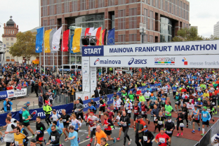 Der Mainova Frankfurt Marathon bewegt über 20.000 Teilnehmer aus über 100 Nationen / Oktobersonne bremst die Topathleten, die dennoch Weltklasse-Laufsport bieten / Blick auf die 40-jährige Jubiläumsau...