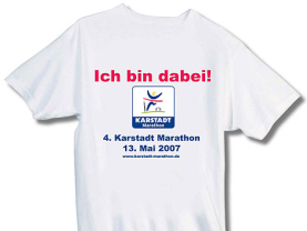 Frühbucher-Shirts beim Karstadt Marathon - für alle Kurzentschlossenen, die sich bis zum 30. Juni 2006 zum 4. Karstadt Marathon 2007 anmelden, gibt es gratis das Karstadt Marathon Funktions-Shirt.