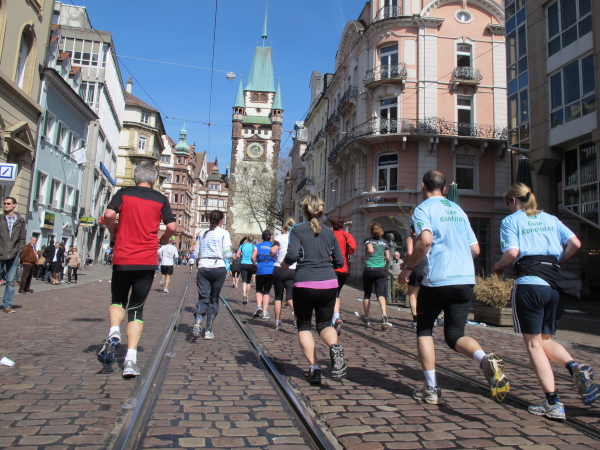 Bei idealen Laufbedingungen wurde am Sonntag, den 1.4.2012 der 9. Freiburg Marathon gestartet. Auf neuer Streckenführung gab es dabei bei den Männern einen neuen Streckenrekord. Im Halbmarathon wiederholten beide Vorjahressieger ihre Erfolge.