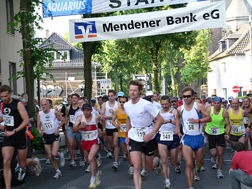 Von den 157 gemeldeten Marathonläufern machten sich am frühen Sonntagmorgen 149 auf den Weg zum 22. Internationalen Menden Marathon. Die große Hitze mit bis zu 30° sorgte auf der zum größten Teil durch Felder führende Strecke ohne Schatten für schwere Bedingungen. Der Ausrichter trug jedoch mit der frühen Startzeit ( 8:00 Uhr ) sowie durch viele Versorgungsstellen der Situation Rechnung.
