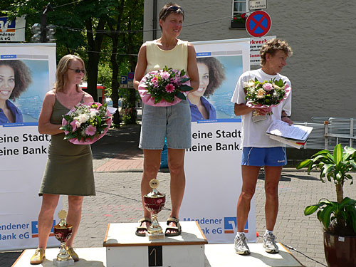 Bei den Frauen konnte Sabine Hundrieser ( Alfterer SC, W35 ) ihren Erfolg von 2003 wiederholen. Sie überholte erst bei KM 32 die zum Schluss Drittplatzierte Regine Tank ( Dortmund, W45, 3:35:29h ) und gewann in einer Zeit von 03:27:58 mit 4 Minuten Vorsprung vor Renate Nikelowski ( LT Köln-Esch, W40, 03:31:38h )