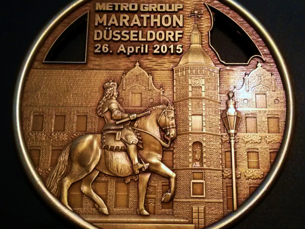 Die Marathon-Medaille des Metro GROUP Marathons Düsseldorf 2015 (26. April) wird erneut ein historisches Motiv tragen. „Wir haben uns wieder für eine sehr große Marathonmedaille entschieden, weil die Leistung, die man bringen muss, um die Medaille zu erhalten, ebenfalls sehr groß ist. Immerhin ist die Marathonstrecke 42,195 Kilometer lang und führt beiderseits des Rheins durch Düsseldorf“, erläutert METRO GROUP Marathon Düsseldorf-Renn-Direktor Jan H. Winschermann.