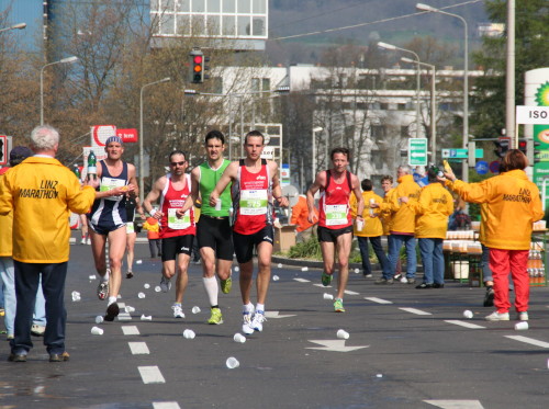 Mitten drin Eva.Maria Gradwohl, die sich mit ihrem Marathonsieg in 2:30:51 Stunden für eine überaus harte und entbehrungsreiche Vorbereitungszeit belohnte. Mit ihrer Zeit unterbot sie die geforderte Olympianorm von 2:33 Stunden deutlich, verbesserte ihre persönliche Bestzeit um 5 ½ Minuten und stellte natürlich auch einen neuen Österreichischen Landesrekord auf. Bei der Sieger-Pressekonferenz schwärmte sie überglücklich von der einmaligen Atmosphäre: „Tausende Leute entlang der Strecke haben einen großen Anteil an meinem Erfolg. Sie haben mich so toll angefeuert. Ich bin mir wie die Prinzessin von Linz vorgekommen, die zum Hauptplatz hofiert wird.“