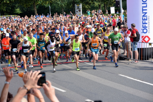 Vorjahressieger Elias Sansar war auch dieses Mal bei bestem Laufwetter nicht zu schlagen. Er benötigte für die Marathondistanz etwas mehr als zweieinhalb Stunden (2:34:37 h). Bei den Frauen war Birgit Schönherr-Hölscher mit 3:16:39 h am schnellsten unterwegs. Den Halbmarathon gewann bei den Männern Abdelmajeed Abdalla (1:14:06 h) und bei den Damen Edith Stiepel (1:29:43 h). Auch beim Staffelwettbewerb ging es sportlich zu, selbst wenn für viele Gruppen das Gemeinschaftserlebnis im Vordergrund stand: Es siegten bei den Männern die LSF Oldenburg (2:51:29 h) und bei den Damen ebenfalls die LSF Oldenburg mit der A-Mannschaft (3:27:09 h). Im Mixed-Wettbewerb lag das Team von „Stiftung Wadentest“ vorn (2:45:04 h).