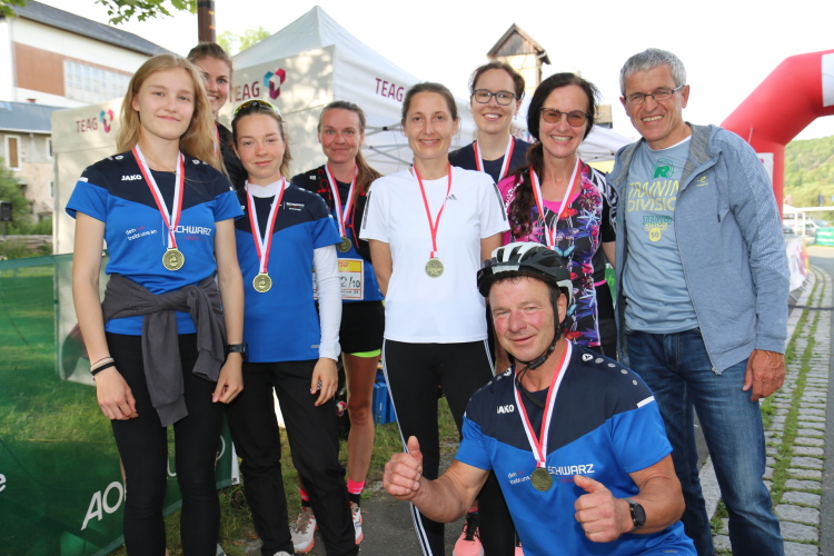 André Skrowny vom GMRLV verlief sich auf dem Abschnitt nach Brennersgrün und absolvierte mehr als 2 Kilometer zusätzlich, rettete aber mit einer Energieleistung trotzdem noch 24 Sekunden Vorsprung, die büßte aber Schlussläufer Johannes Gerlof durch einen erneuten Verläufer ein. Im Ziel freute sich das Team der jungen Erfurter Leichtathleten über den zweiten Platz bei der Premiere. Die Rennsteigläufer haderten etwas mit ihrem Missgeschick. Der Radbegleiter hatte nach 8 anstrengenden Etappen nicht mehr die Kraft dem schnellen Tempo seiner Läufer zu folgen. Präsident Jürgen Lange, der eigentlich auf den Schlussetappen begleiten wollte, war durch repräsentative Verpflichtungen verhindert. „Hier müssen wir ein bisschen nachjustieren“, meinte Teamchef Christoph Weigel. Der Präsident freute sich dennoch