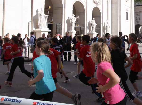 Mit dem Coca-Cola Junior-Marathon wurden die 9. Lauffestspiele in der Mozartstadt am Samstag eröffnet: Mehr als 1.100 Kinder und Jugendliche hatten für den Kinder- und Jugendlauf im Rahmen des Salzburg Marathon gemeldet. Als um 17:15 Uhr der Startschuss für die jüngsten Teilnehmer am Max-Reinhardt-Platz fiel, spielte auch das Wetter perfekt mit. Noch zwei Stunden vorher hatte es geregnet, während des Coca-Cola Junior-Marathon strahlte die Sonne mit den Kindern und Zuschauern um die Wette.