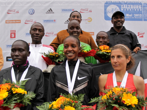 Unter den Augen von Marathon-Weltrekordler Patrick Makau, der das Rennen als interessierter Beobachter genoss, gab es beim Salzburg Marathon zwei kenianische Erfolge. Bei traumhaften Wetter und angenehmen Temperaturen war bei den Männern Martin Kiprugut-Kosgei nicht zu schlagen. „Ich bin sehr aufgeregt und glücklich“, jubelte der 23-jährige Kenianer nach seinem Sieg in 2:16:36 Stunden. Gleich in seinem ersten Rennen außerhalb Kenias feierte Kiprugut-Kosgei seinen ersten Sieg: „In der zweiten Runde habe ich mehr Tempo gemacht und konnte mich etwas absetzen.“