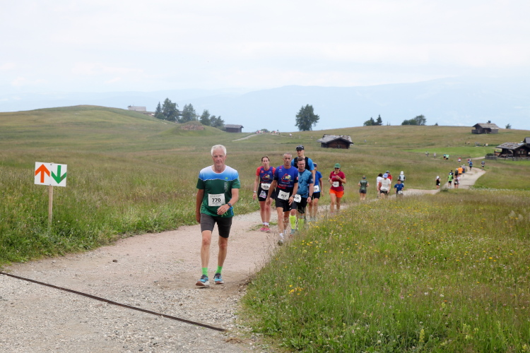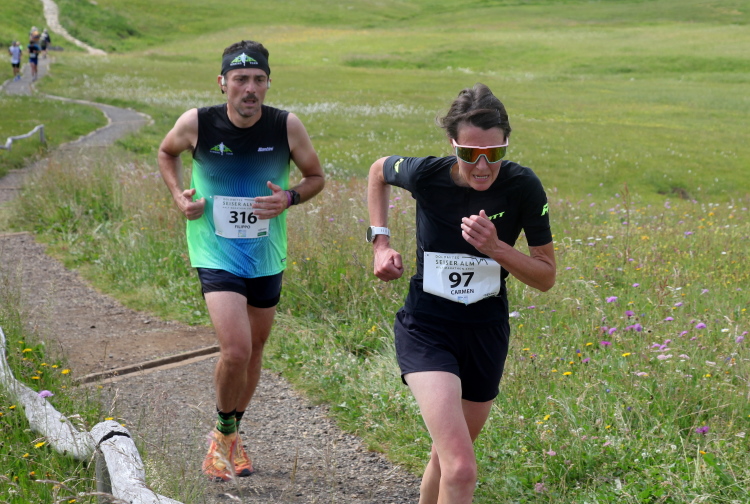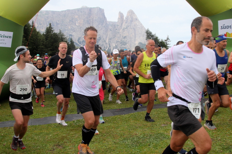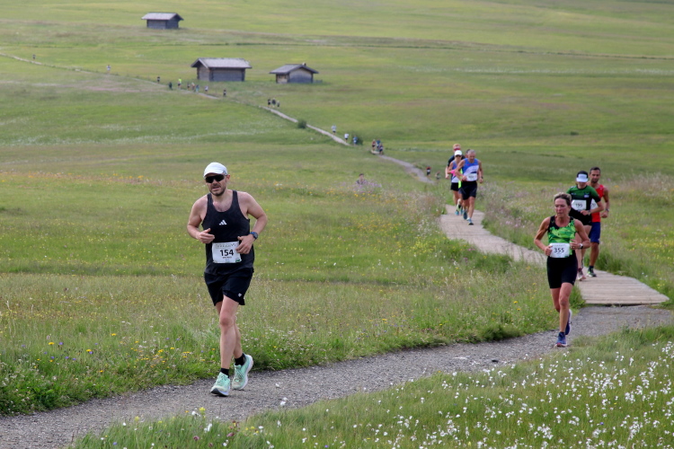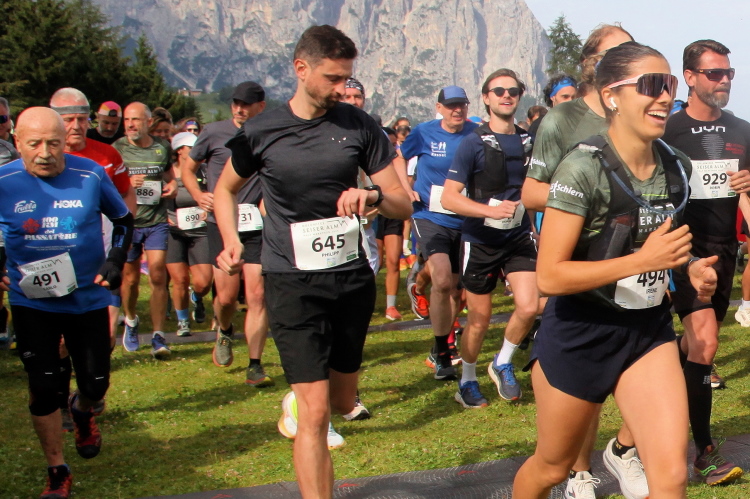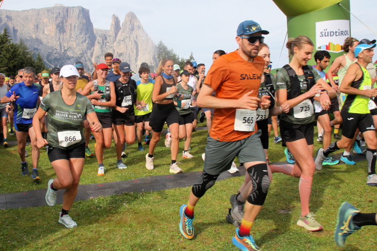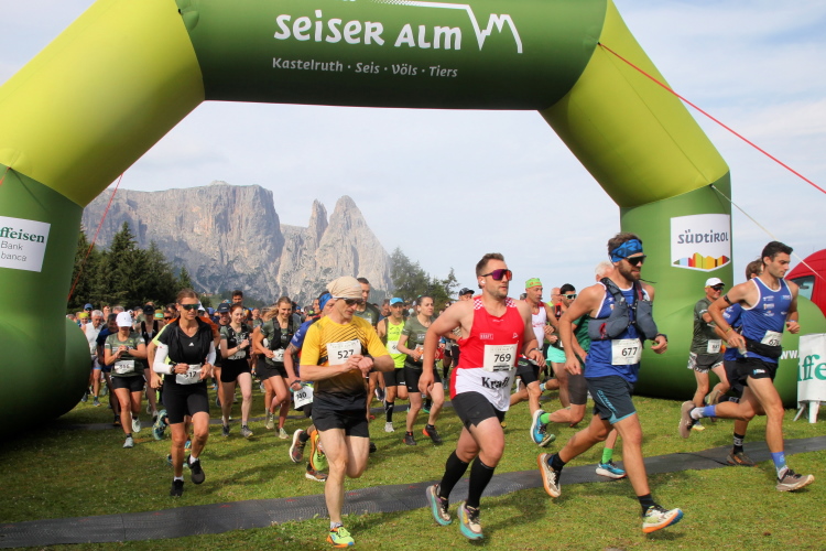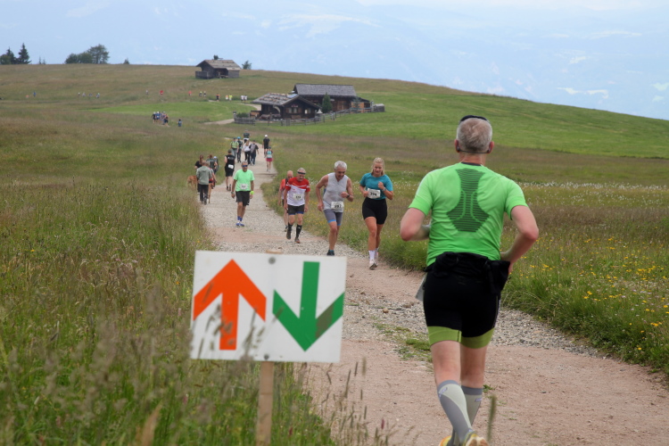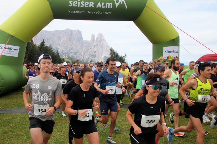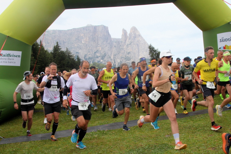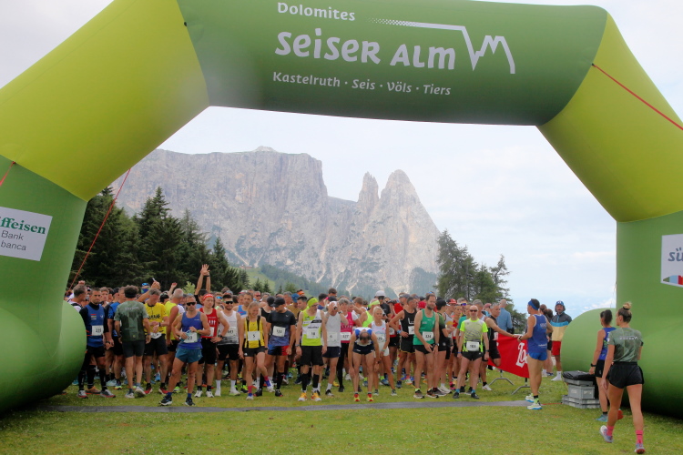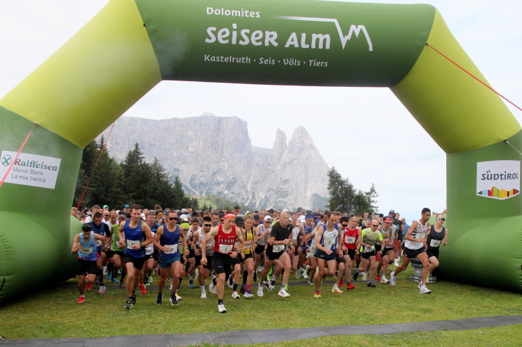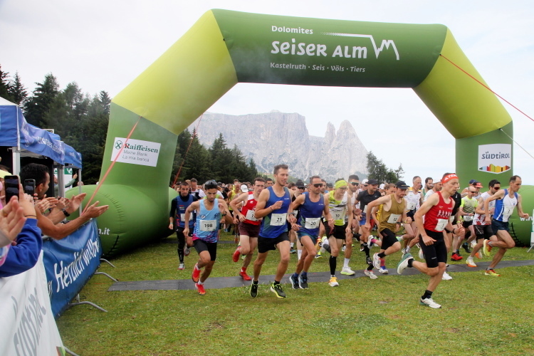Pünktlich um 9 Uhr fiel in Compatsch der Startschuss zum beliebten Lauf-Event auf Europas größter Hochalm, das trotz Aufstockung von 700 auf 900 Startplätze bereits Mitte April ausverkauft war. Zunächst setzte sich der Grödner Samuel Demetz an die Spitze des Männerfeldes. Doch als bei Kilometer 8,9 zum zweiten Mal beim Ritsch die Zwischenzeit gemessen wurde, lag Daniele Felicetti in Front. Der aus Predazzo stammende Ausdauer-Spezialist, der mittlerweile in Forno wohnt, baute in der Folge seinen Vorsprung aus. Nach 21,1 Kilometern und 600 Höhenmetern ging Felicetti nach 1:18.21 Stunden über die Ziel-Linie, was einer Pace von 3.42 Minuten pro Kilometer entspricht.