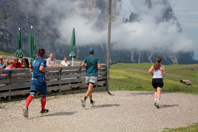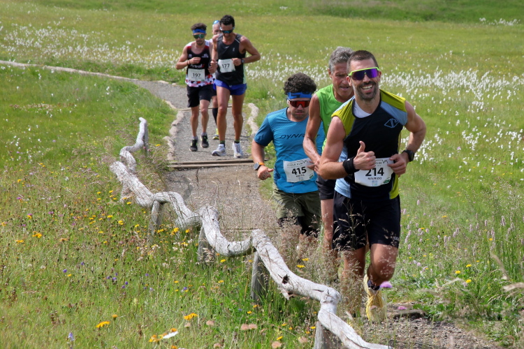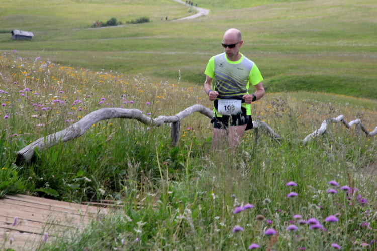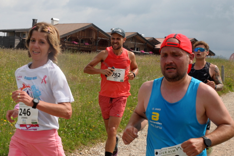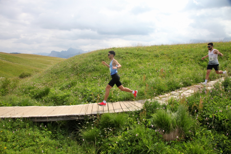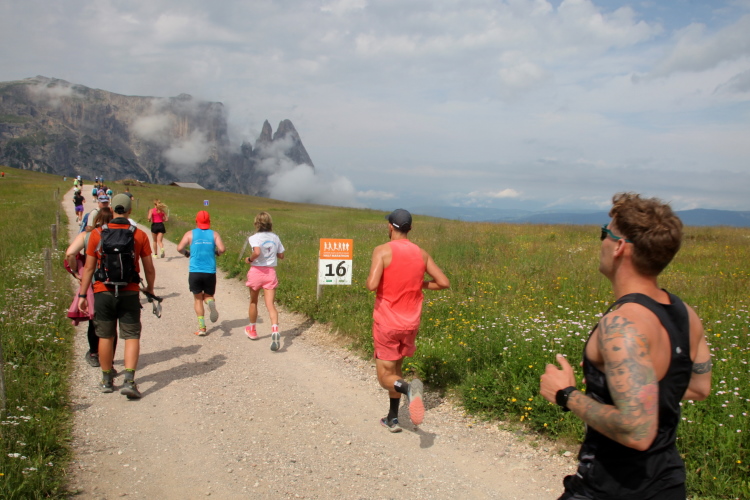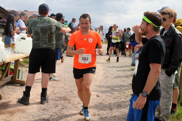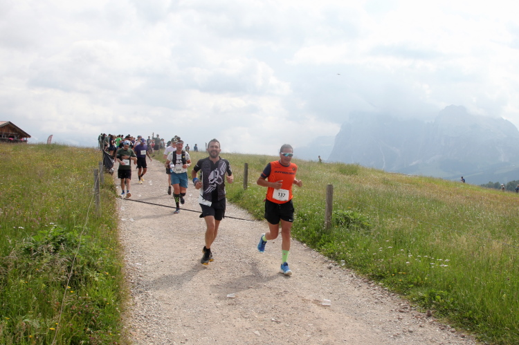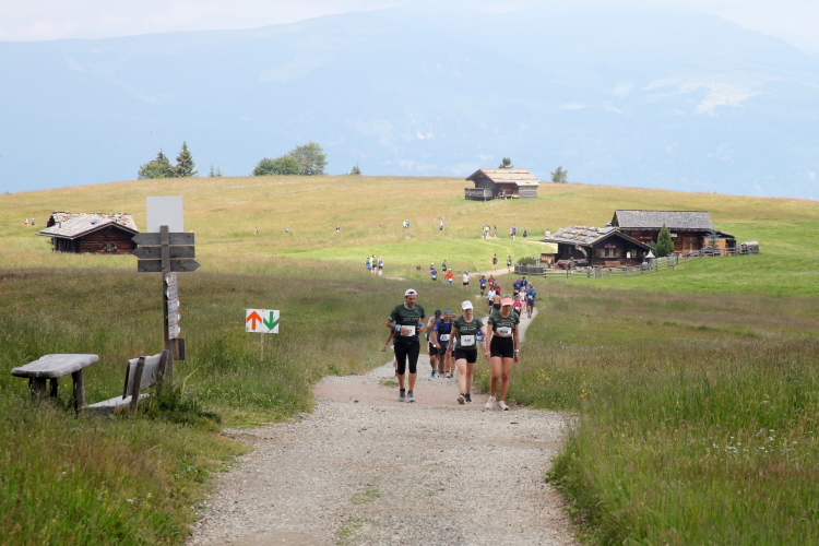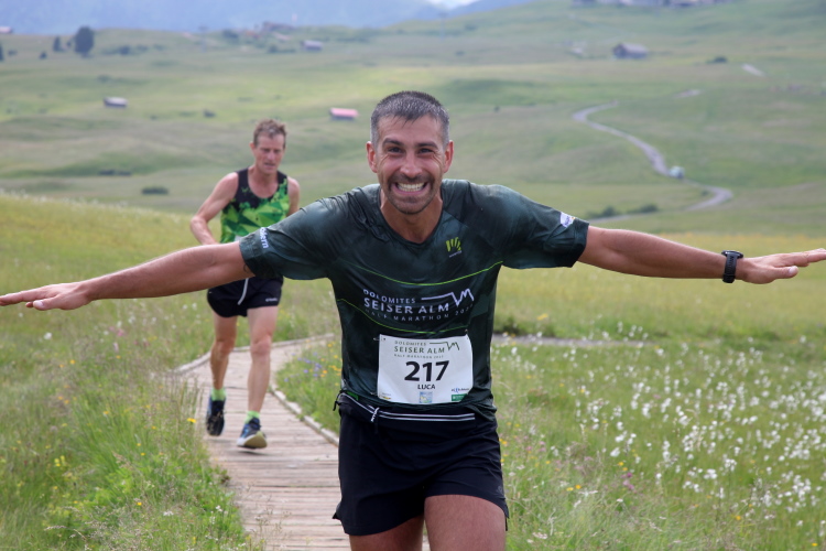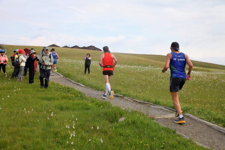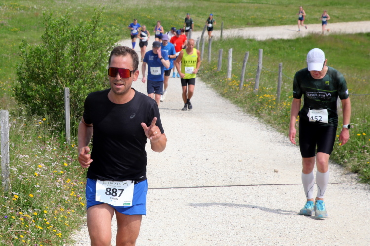 Pünktlich um 9 Uhr fiel in Compatsch der Startschuss zum beliebten Lauf-Event auf Europas größter Hochalm, das trotz Aufstockung von 700 auf 900 Startplätze bereits Mitte April ausverkauft war. Zunächst setzte sich der Grödner Samuel Demetz an die Spitze des Männerfeldes. Doch als bei Kilometer 8,9 zum zweiten Mal beim Ritsch die Zwischenzeit gemessen wurde, lag Daniele Felicetti in Front. Der aus Predazzo stammende Ausdauer-Spezialist, der mittlerweile in Forno wohnt, baute in der Folge seinen Vorsprung aus. Nach 21,1 Kilometern und 600 Höhenmetern ging Felicetti nach 1:18.21 Stunden über die Ziel-Linie, was einer Pace von 3.42 Minuten pro Kilometer entspricht.