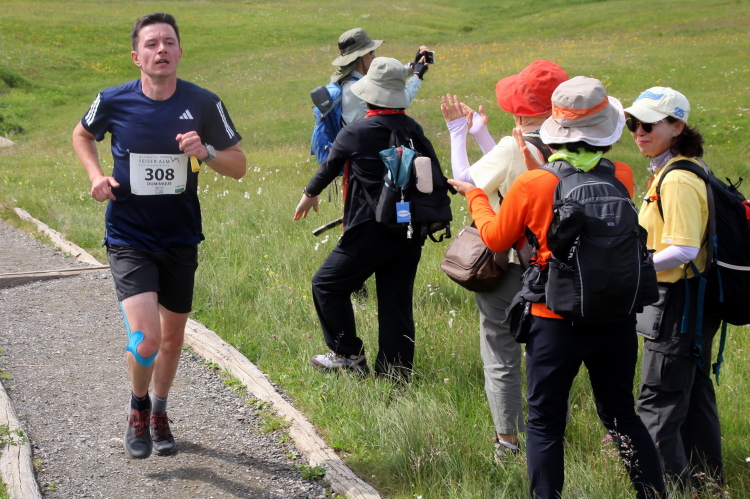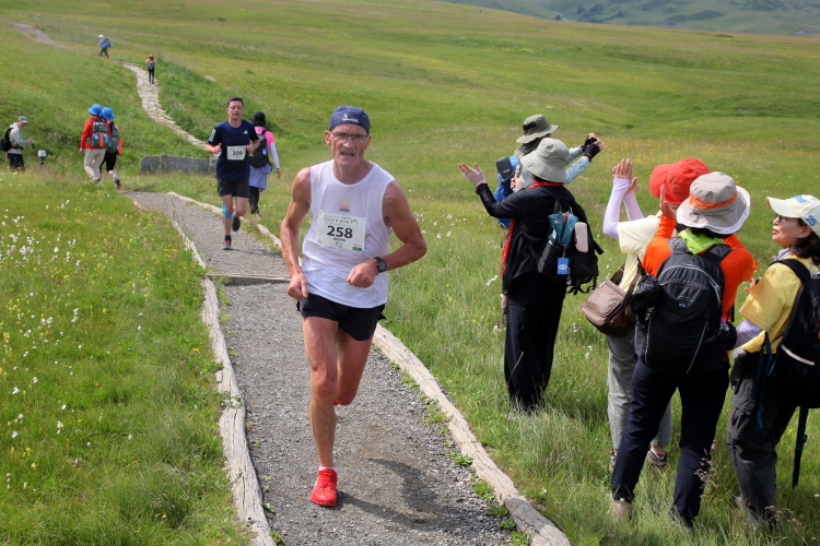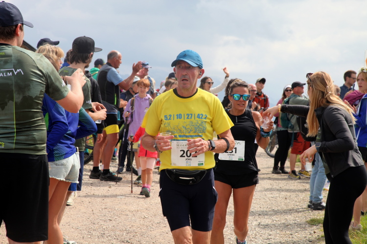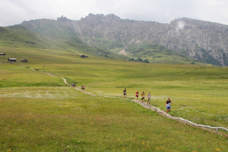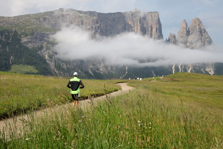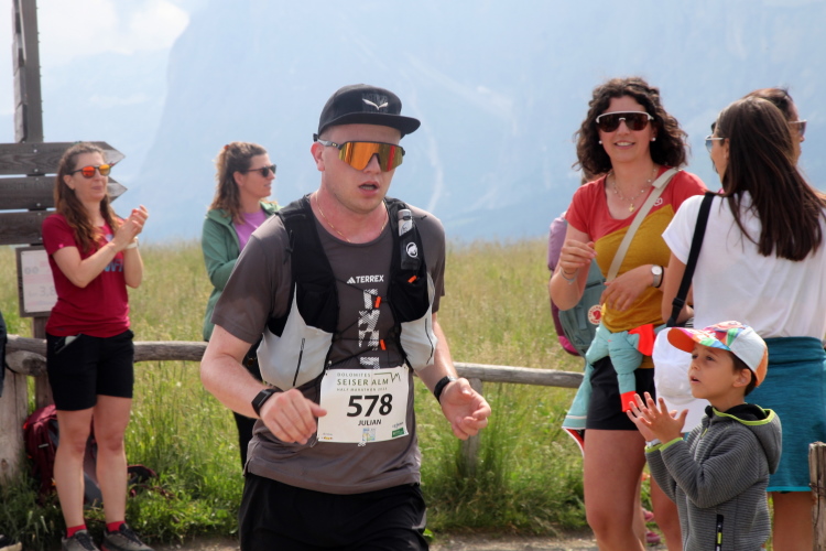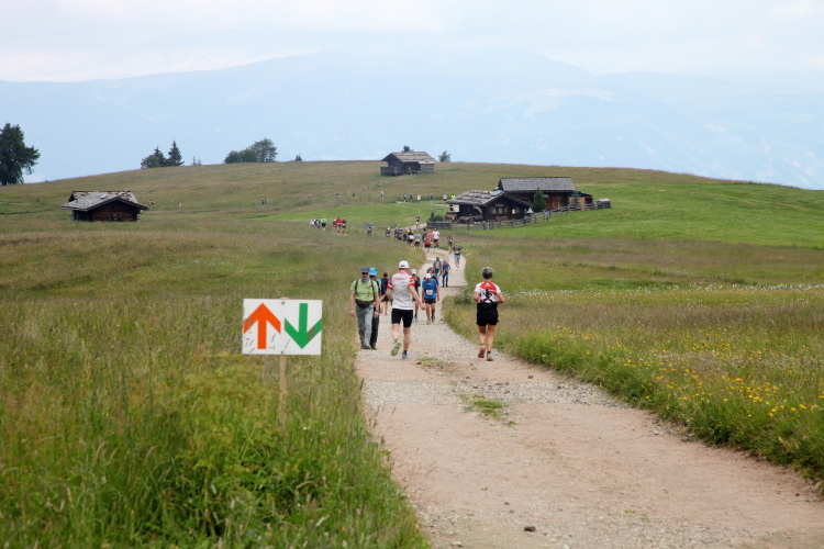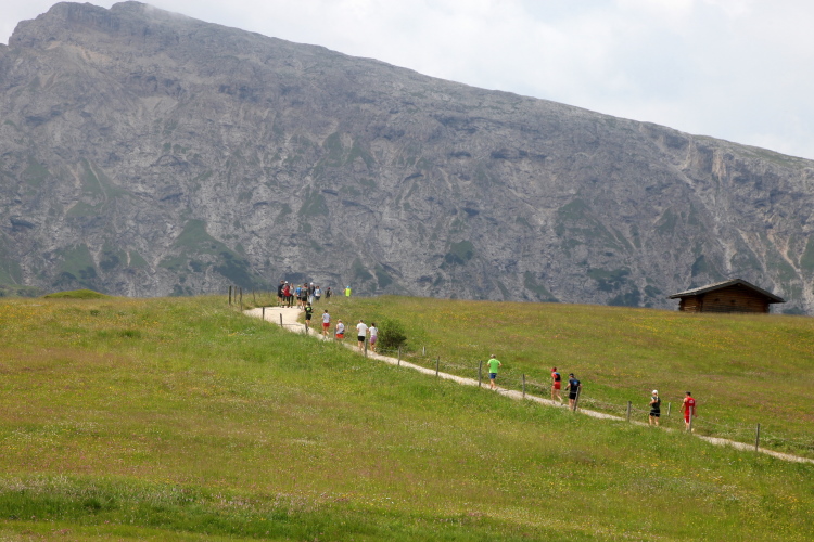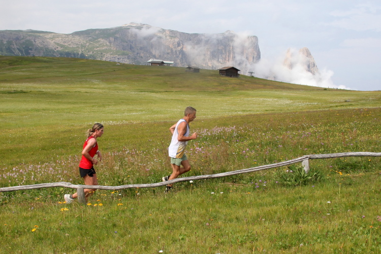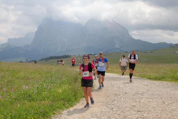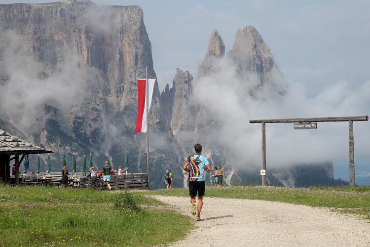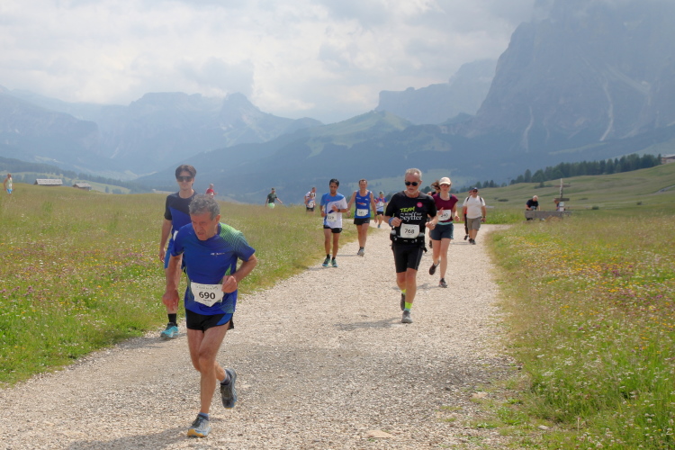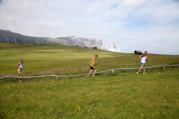 Pünktlich um 9 Uhr fiel in Compatsch der Startschuss zum beliebten Lauf-Event auf Europas größter Hochalm, das trotz Aufstockung von 700 auf 900 Startplätze bereits Mitte April ausverkauft war. Zunächst setzte sich der Grödner Samuel Demetz an die Spitze des Männerfeldes. Doch als bei Kilometer 8,9 zum zweiten Mal beim Ritsch die Zwischenzeit gemessen wurde, lag Daniele Felicetti in Front. Der aus Predazzo stammende Ausdauer-Spezialist, der mittlerweile in Forno wohnt, baute in der Folge seinen Vorsprung aus. Nach 21,1 Kilometern und 600 Höhenmetern ging Felicetti nach 1:18.21 Stunden über die Ziel-Linie, was einer Pace von 3.42 Minuten pro Kilometer entspricht.