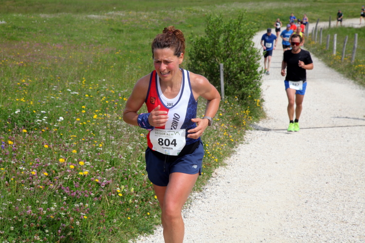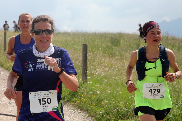 Am meisten wurde Scaini von Claudia Previtali gefordert. In 1:35.34 war die 22-jährige „Azzurra“ etwas mehr als 1.20 Minuten langsamer als die Tagessiegerin. Platz drei im Klassement nahm hingegen die Schweizerin Marie-Julie Huber ein, der eine Gesamtzeit von 1:37.39 Stunden zu Buche stand. Eine starke Leistung zeigte auch die Wahl-Südtirolerin Severine Petersen. Die in Freienfeld wohnhanfte Deutsche bewältigte die 21,1 km mit 600 Höhenmetern in 1:38.25 Stunden und wurde Fünfte. In die Top Ten schaffte es mit Annemarie Schöpf (ASV Rennerclub Vinschgau/8.), Laura Neulichedl (LG Schlern/9.) und Selina Maria Neulichedl (ASV Rennerclub Vinschgau/10.) noch drei weitere heimische Ausdauersportlerinnen.
