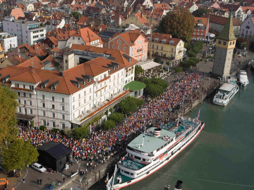 Besser hätte der Auftakt zum 1. Sparkasse-Marathon im Dreiländereck nicht sein können. Kaiser-Wetter empfing die gut 2.500 Teilnehmer beim Start auf der Insel in Lindau. Pünktlich um 11.11 Uhr starteten der Sparkasse-Marathon, der VN-Halbmarathon, der VKW-Viertelmarathon sowie die Nordic Walker.