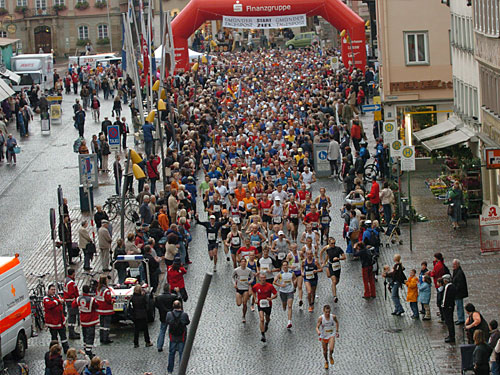 Der Start erfolgte wieder vom historischen Marktplatz in der Mitte der Stadt aus, wo die Läufer unter einer bisher nicht dagewesenen Zuschauerbeteiligung von Oberbürgermeister Leidig, dem Präsident der DUV, Volkmar Mühl und dem Vorsitzenden der DJK Schwäbisch Gmünd, Bernhard Dangelmaier auf die Strecke geschickt wurden.