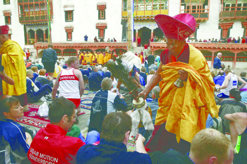 Wie immer begann das Laufspektakel im Innenhof des berühmten Hemis-Klosters, etwa 48 km von Leh entfernt. Der Klang buddhistischer Tempelhörner lieferte, ganz der regionalen Tradition entsprechend, den „Startschuss“ für den diesjährigen GTM. Den Teilnehmern stand es frei je nach persönlicher Kondition, entweder die klassische Marathondistanz von 42,195 km zu wählen oder sich für eine kürzere Laufdistanz von 5 km, 10 km oder natürlich auch für einen Halbmarathon zu entscheiden. Schon auf den ersten Metern bekamen alle Läufer deutlich zu spüren, warum eine Akklimatisierung von mehreren Tagen in dieser Höhe absolute Grundvoraussetzung für den GTM war – die Luft ist dünner und das Atmen fällt einfach schwerer als gewohnt.