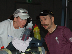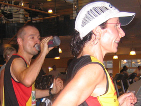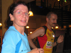 Beide laufen auf den Laufbändern in den Bocholter Shopping Arkaden ohne nennenswerte Probleme: Claudia durchschnittlich 90 km, Thomas ca. 100 km pro Tag .