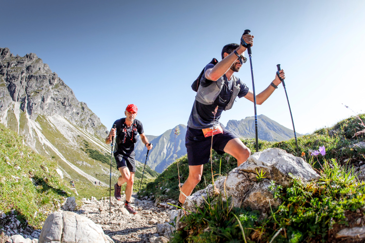 Das naturverbundene Kleinwalsertal bot mit seiner Kulisse den perfekten Startpunkt für den beliebten Trailrunning Wettbewerb. Die erste Tagesetappe von Hirschegg nach Lech am Arlberg in Öster- reich mit 31,7 km und 1.900 hm führte die Zweierteams über den Gemstelpass (1.971m) zur Alpe Schröcken und die Mohnenfluhscharte (2.313m) als höchsten Punkt. Von dort liefen die Teams bergab über Oberlech zum Tages- ziel in Lech am Arlberg.