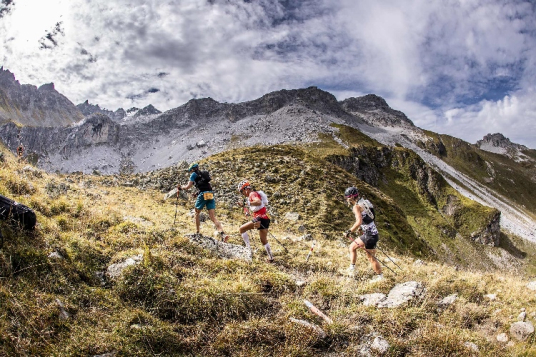 Grandiose Kulisse und harte Wettkämpfe auf der Königsetappe des Transalpine Run von Brand nach Klosters über 50 Kilometer und 3300 Höhenmeter.