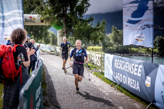 Der 20. Dynafit Transalpine Run powered by Garmin endet nach 220 Kilometern und 13.500 Höhenmetern mit emotionalem Finale am Reschensee in Südtirol. 560 Läuferinnen und Läufer finishen die legendäre Alpenüberquerung