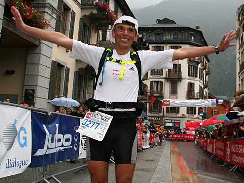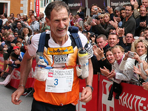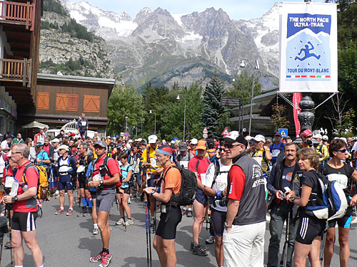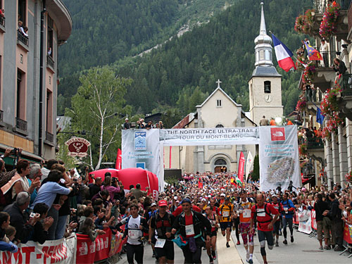 Fünf Stunden später, um 19.00 Uhr wurde es für die 2.500 Teilnehmerinnen und Teilnehmer in Chamonix (1035 m) Ernst, die die gesamte Umrundung in max. 45 Stunden an Angriff nahmen. Der 158 Kilometer lange Kurs führte über den Col de Voza (1635 m). Col de la Seigne (2516 m) und Mont Favre (2435 m) nach Courmayeur, von wo aus der Steckenverlauf dann mit dem dort zuvor gestarteten Rennen identisch war.