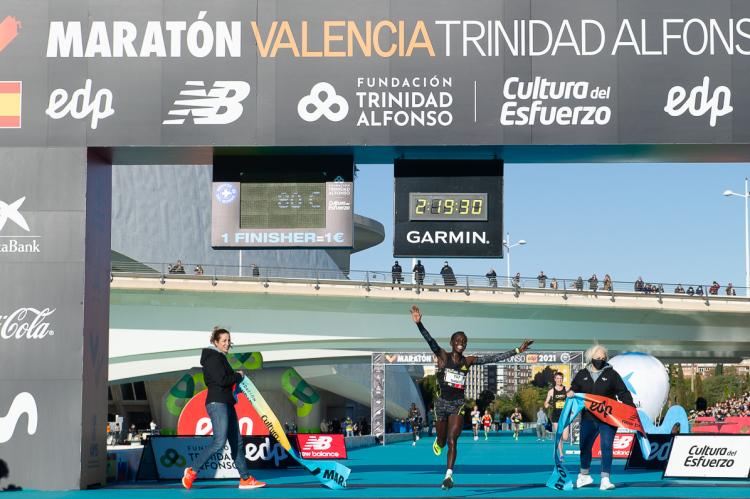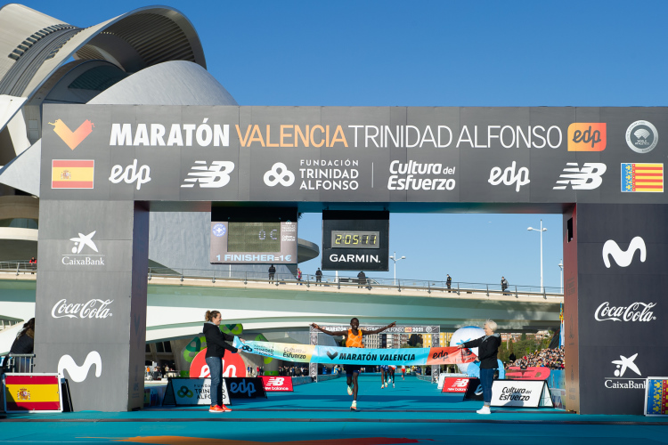 Lawrence Cherono mit einer Zeit von 02:05:10 und Nancy Jelagat mit 02:19:31 haben heute den 41. Trinidad Alfonso EDP Valencia Marathon gewonnen. Diese Ausgabe war gekennzeichnet von der Rückkehr tausender Hobbyläufer nach zwei Jahre Abwesenheit.