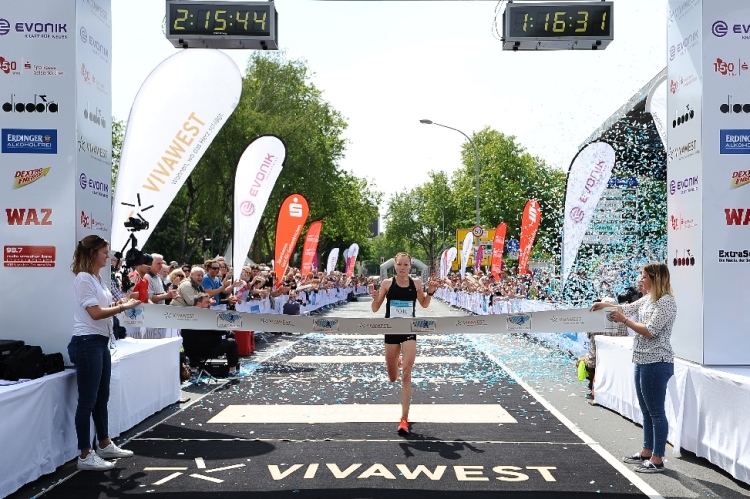 Bei den Frauen konnte das Team von Ayyo Essen einen weiteren Erfolg für sich verbuchen. Souverän siegte Annika Vössing in einer Zeit von 2:57:34 h mit großem Vorsprung vor ihrer Konkurrenz. „Heute hat alles gepasst. Ich konnte mich fast von Anfang an die Spitze setzen und mein Rennen laufen“, erzählt Vössing, die bereits zahlreiche Titel beim Duathlon für sich verbuchen konnte und unter anderem 2014 und 2015 Deutsche Vize-Meisterin über die Duathlon Kurzdistanz war. Insgesamt hat sie bislang erst vier Marathonläufe absolviert, beim VIVAWEST-Marathon startete sie zum ersten Mal. Ihre erste Verfolgerin, Ina Radix (LGO Bochum) kam nach 3:06:53 Stunden ins Ziel, gefolgt von Anika Fels (LG Coesfeld) mit 3:07:43 Stunden.