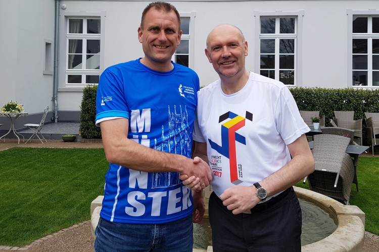 Arjen de Ruyter vom Utrecht Marathon und Michael Brinkmann besiegelten die gemeinsame Zusammenarbeit in diesen Tagen an der deutsch-niederländischen Grenze. Konkret wurde mit dem Utrecht Marathon schon vereinbart, dass man ab 2018 ein vergünstigtes Startgeld für beide Läufe erhebt, das - sofern man beide Veranstaltungen besucht -, als Läufer dadurch schon 20 EUR spart. Mit den anderen Partnern will man nun auch schnell sprechen. Denn schon am 21. Mai startet der Leiden Marathon. Im Juni finden die Läufe in Amersfoort und Sneek statt, während die Urlaubsregion Zeeland am 7. Oktober und Terschelling am 6. November stattfinden. Der Volksbank-Münster-Marathon startet am 10. September (www.volksbank-muenster-marathon.de).