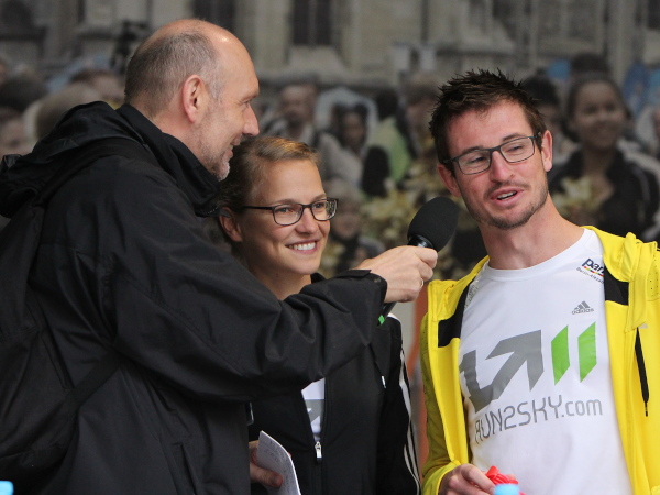 Pulverisiert wurde dann auch der Streckenrekord der Damen aus dem Jahre 2010, den bis dahin Volha Salevich hielt. "Es ist heute Girls-Day", so ein niederländischer Marathon-Manager. Mit einem neuen Streckenrekord siegte Eleni Gebrehiowot vom TV Wattenscheid in einer Zeit von 2:29:12 Stunden und wird damit sicherlich die Fahrkarte für die Europameisterschaften in Zürich 2014 haben. Selbst Lisa Hahner, erfolgreichstes Nachwuchstalent mit einer Bestzeit von 2:31 Stunden, die den Zieleinlauf mit kommentierte, war völlig aus dem Häuschen: Diese Stimmung, diese Power von Eleni - einfach grandios. Die 21jährige will ihren dritten Marathon in Frankfurt laufen und hatte in Münster Gänsehaut alleine beim Zusehen.
