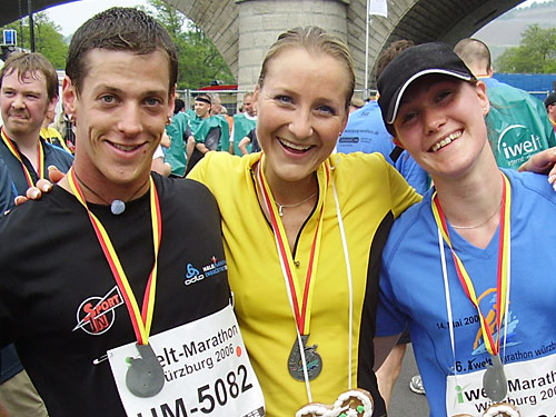 Beim Muttertagsmarathon in Würzburg gab es fast nur zufriedene Gesichter. Eine Stunde vor dem Start hörte es auf zu regnen und die Wolken gaben die Sonne frei. In weiser Voraussicht auf optimale Bedingungen hatten sich über 1.200 Läuferinnen und Läufer kurzfristig nachgemeldet und damit für einen neuen Teilnahme-Rekord gesorgt.
